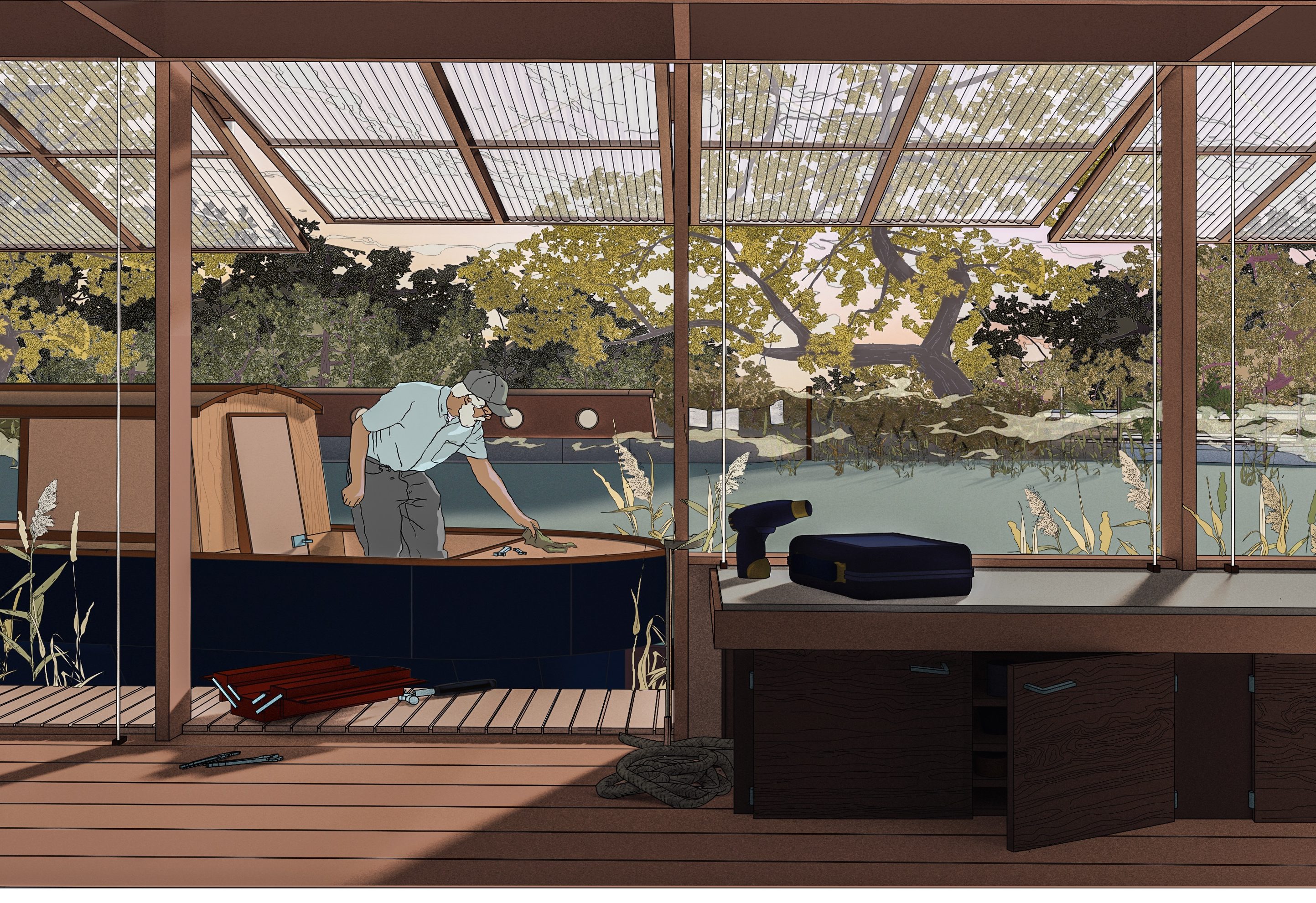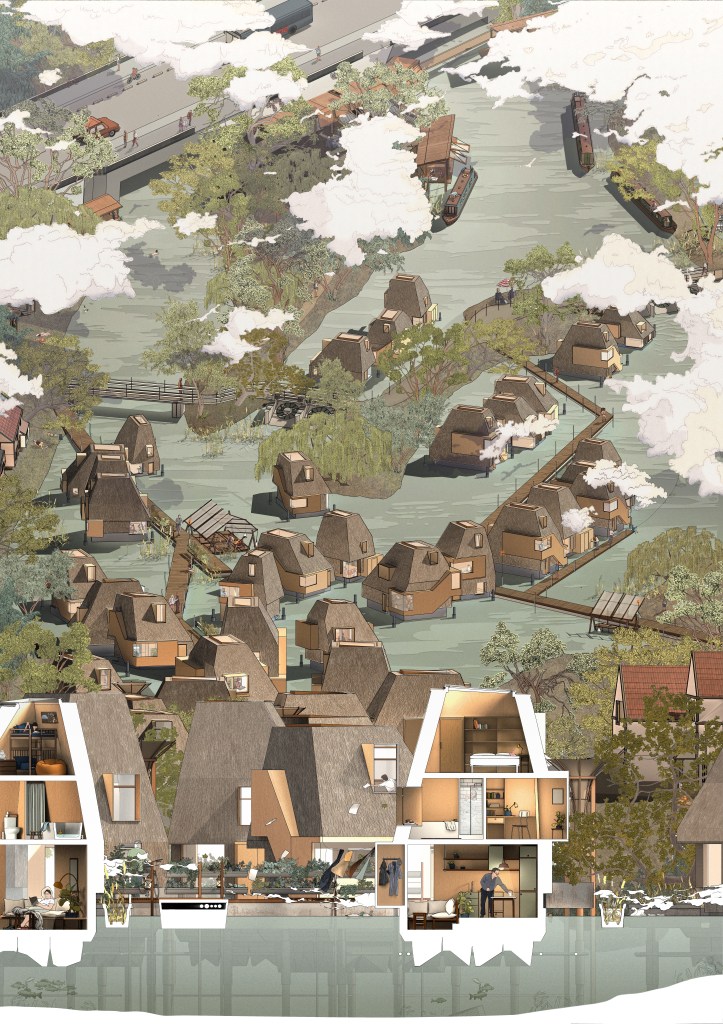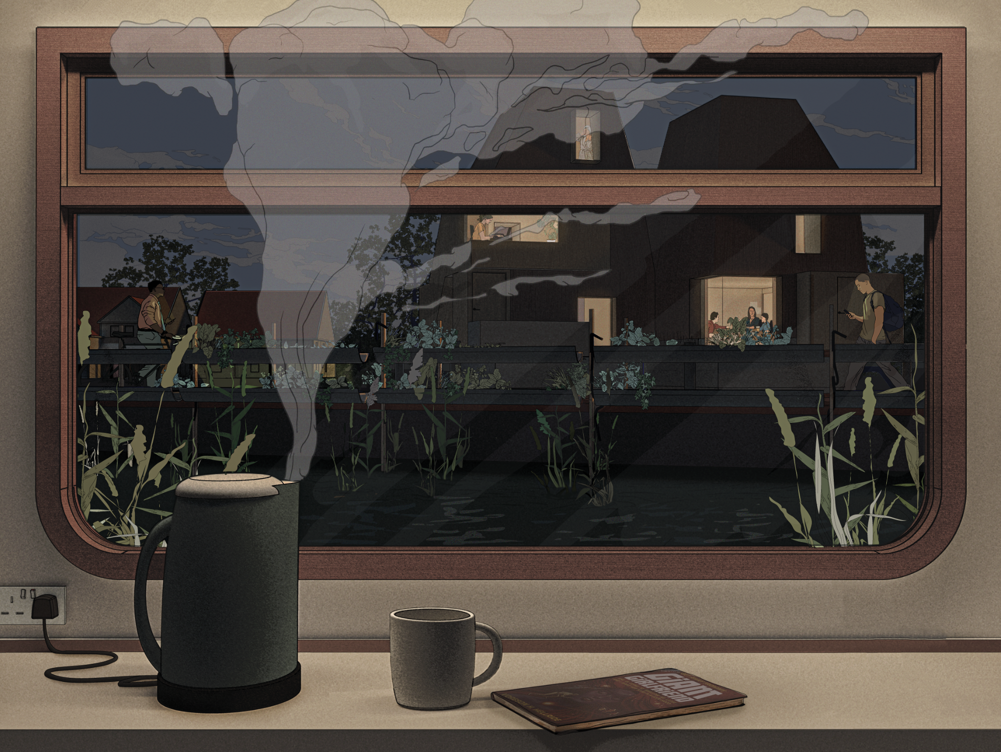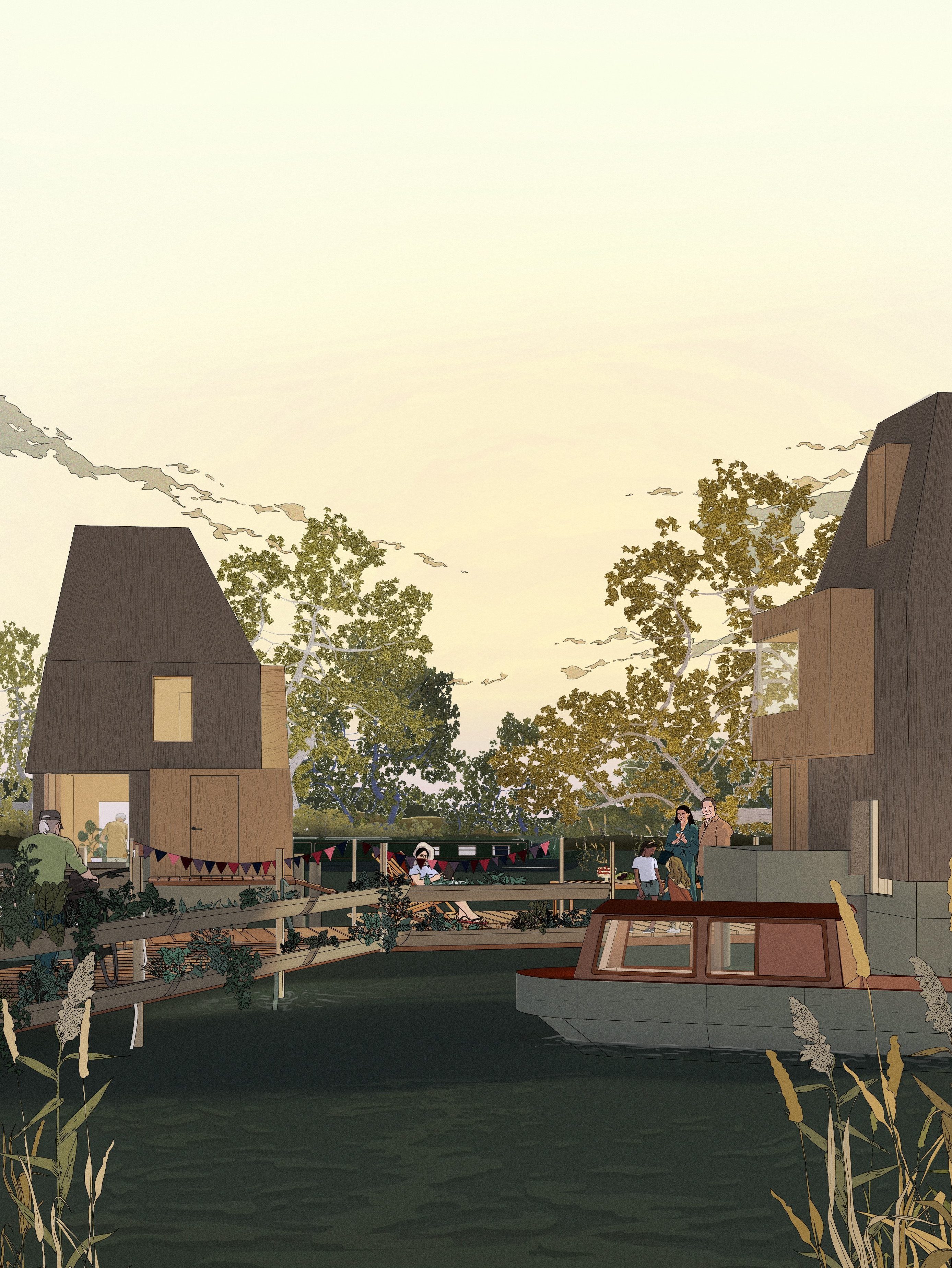 This scheme aims to create a new rural typology for social housing, aiming to regenerate the landscape of Iffley Meadows through community stewardship. This contemporary typology utilises floating structures to minimise environmental impact on both Oxfords Green-Belt and the biodiversity of the site. Through the inhabitation of waterways, the settlement acts as a prototype for living considering Oxfords future flooding and housing crisis.